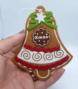 Dolce decorazione di legno natalizia a forma di campanella in feltro.